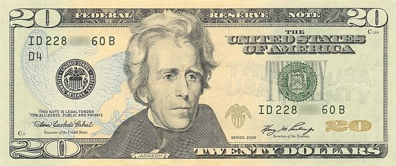 Andrew Jackson’s face has been on the $20 bill since 1929, replacing Grover Cleveland, who appeared on the original 1914 bill. Cleveland was then moved to the $1,000 bill. Image: Obverse of the$20 bill.