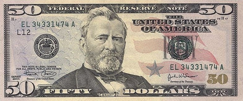 Ulysses S. Grant’s face has appeared on the $50 bill since it was first issued in 1914. The Union general served two terms as president, aiding in post-Civil War recovery. Image: Obverse of the $50 bill.
