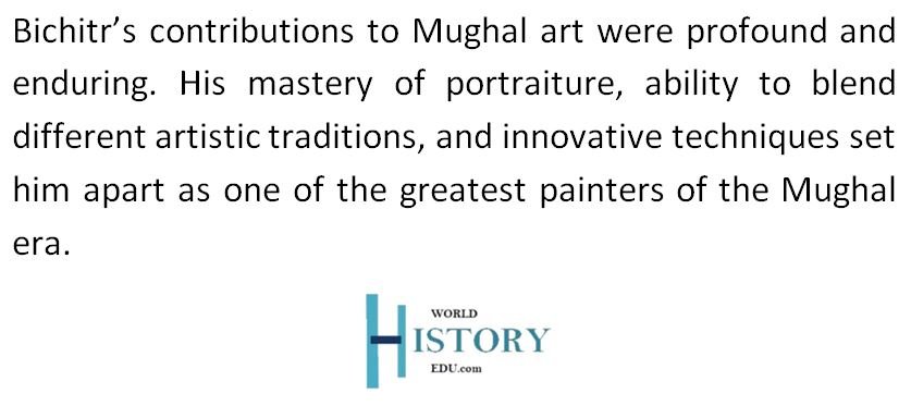 Bichitr’s ability to blend Mughal, Persian, and European styles set him apart, making him one of the most influential artists of his era.