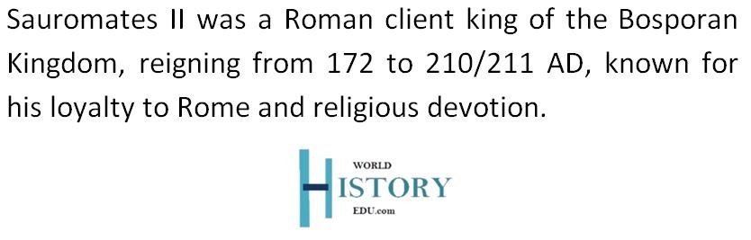 Tiberius Julius Sauromates II Philocaesar Philoromaios Eusebes, commonly referred to as Sauromates II, was a Roman client king who ruled the Bosporan Kingdom from 172 to 210/211 AD. His reign, known through inscriptions and coinage, highlights his contributions to the kingdom’s military, economy, and cultural ties with Rome. The following sections explore his lineage, life, and legacy.