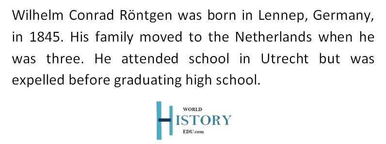 The unfortunate event that led to him being expelled from school in 1863 was a prank perpetrated by another pupil. Röntgen chose not to clear his name. Without any high school diploma, Rontgen could not enroll in any university. Rather than allow that curtail his quest for scientific knowledge, he chose to attend college courses as a visitor.