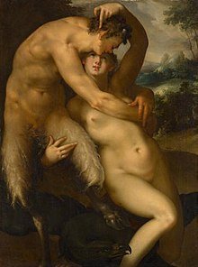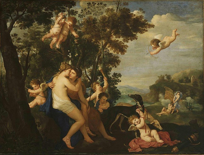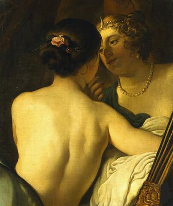 Jupiter and Callisto by Flemish painter Karel Philips Spierincks. In the background Jupiter’s jealous wife Juno is dragging Callisto by the hair.