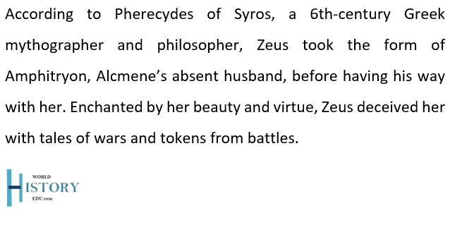 Ancient Greek historian Diodorus Siculus (also known as Diodorus of Sicily), Alcmene was the last mortal woman Zeus had an affair with. The historian goes on to say that the King of the Olympians stopped having human offspring altogether.